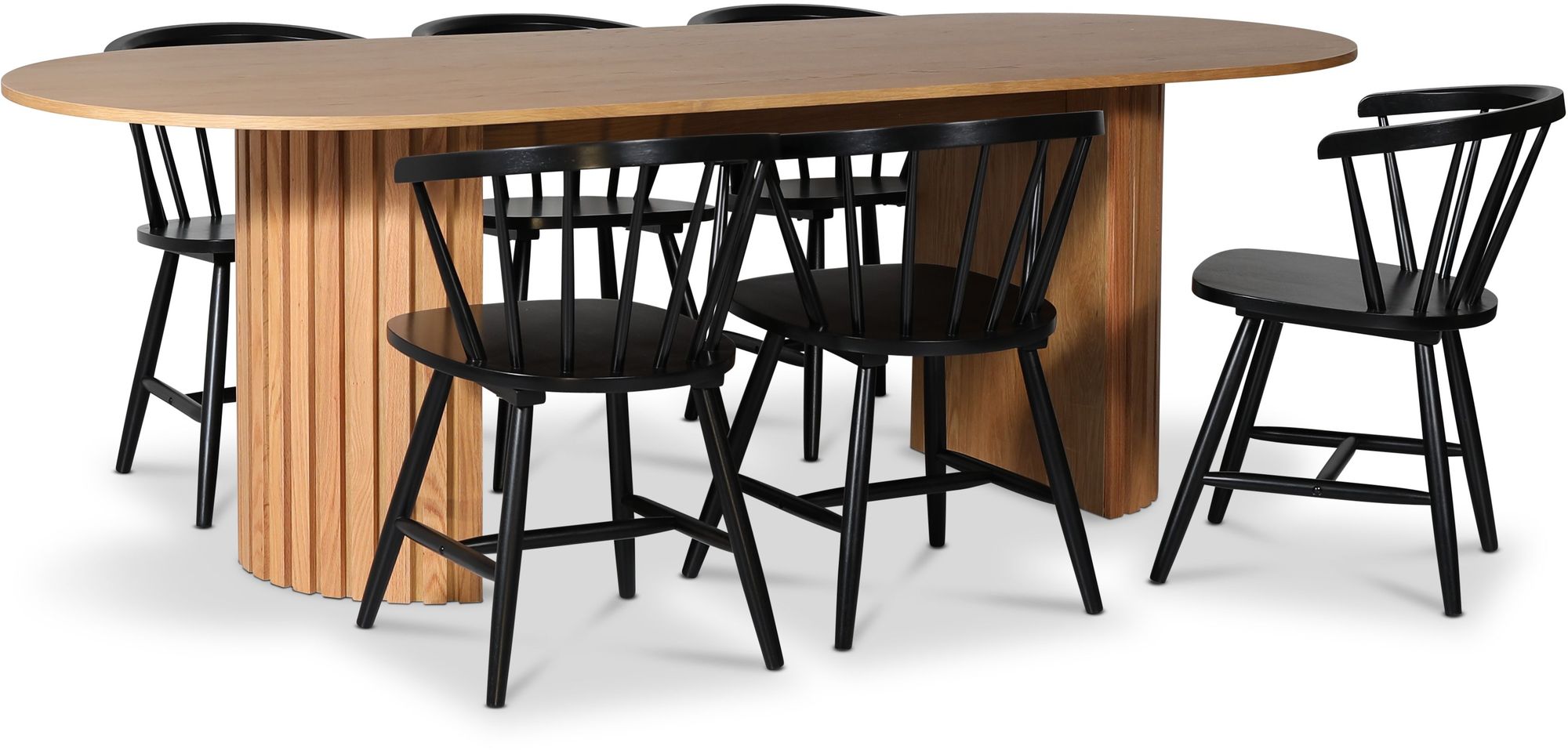 PiPi matgrupp 230 cm inkl. 6 st Fårö svarta karmstolar - Oljad ek