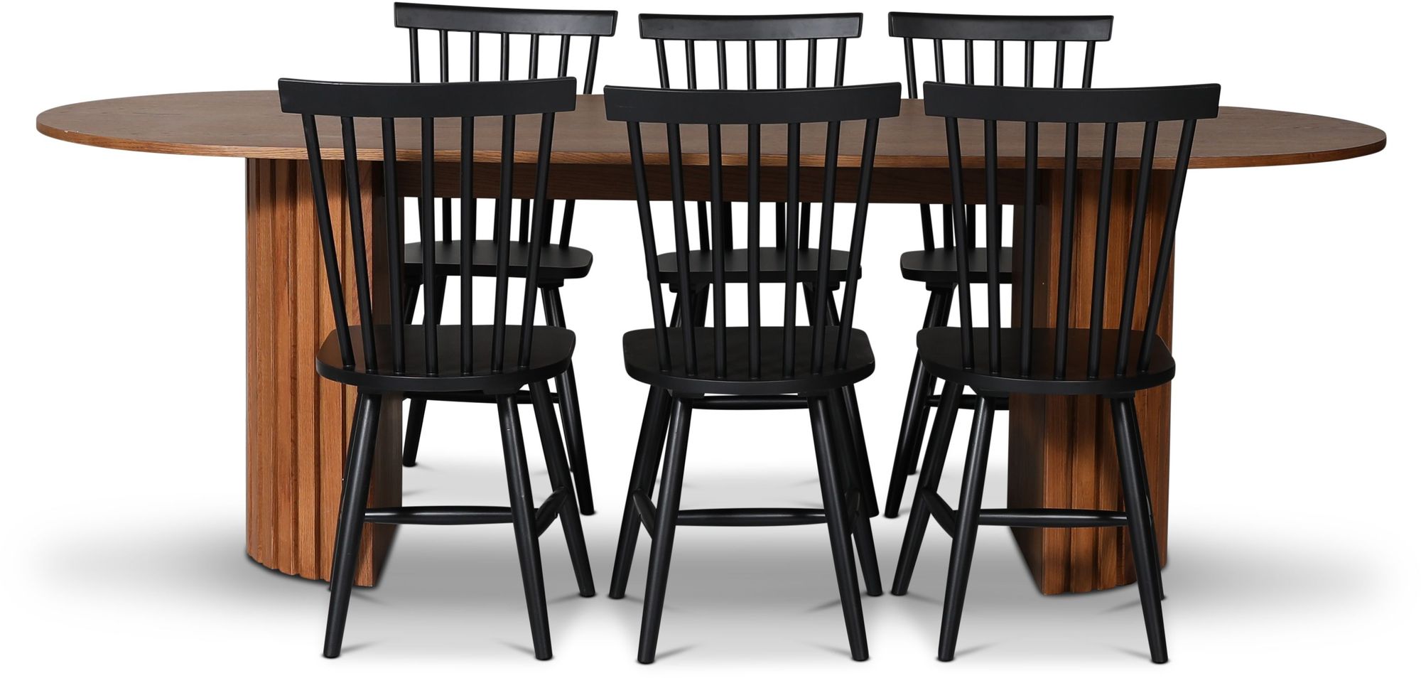 PiPi matgrupp 230 cm inkl. 6 st Karl svarta pinnstolar - Valnöt: