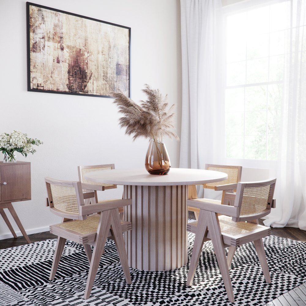 PiPi matgrupp, runt matbord Ø150 cm inkl 4 st Sara karmstolar - Whitewash
