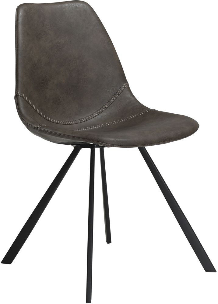 Stol med tuff design från Skånska Möbelhuset, klädd i slitstarkt konstläder i vintage grå. Benen är av svart metall och är utformade för att ge stolen en häftig känsla. Sömar i konstlädret som ger karaktär.