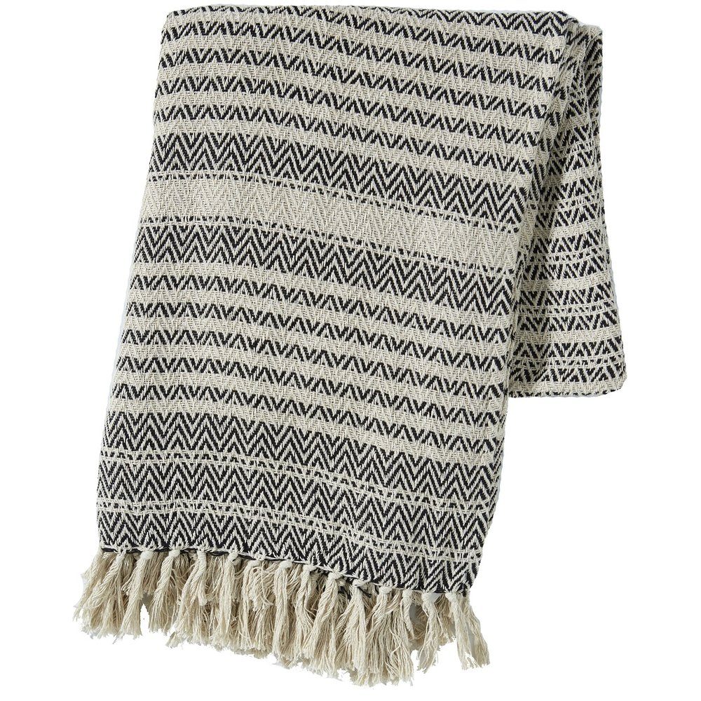 Chanda Pläd i mjuk akryl. Svart/Natur. Perfekt att mysa ner sig i soffan med.