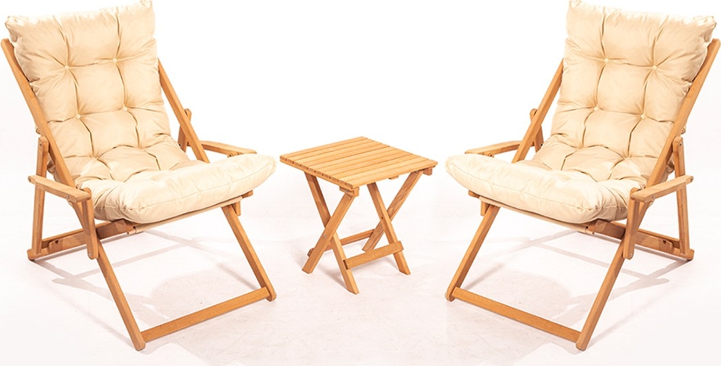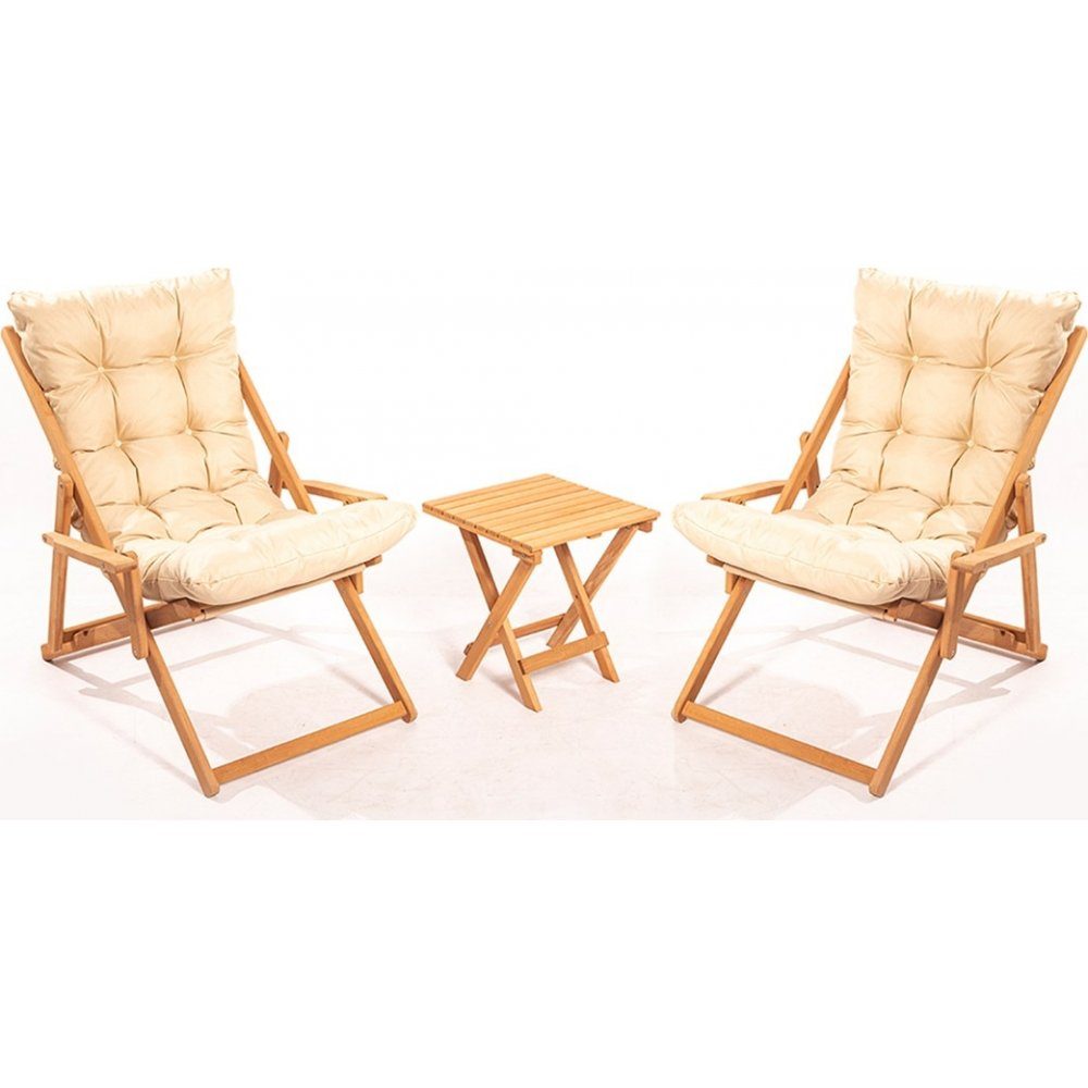 Loungegrupp av bokträ med 2 st stolar och ett bord.