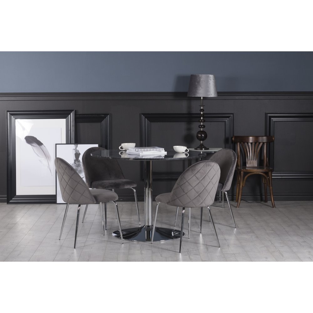 Plaza matgrupp, marmorbord med 4 st Plaza sammets stolar - Grå/Krom