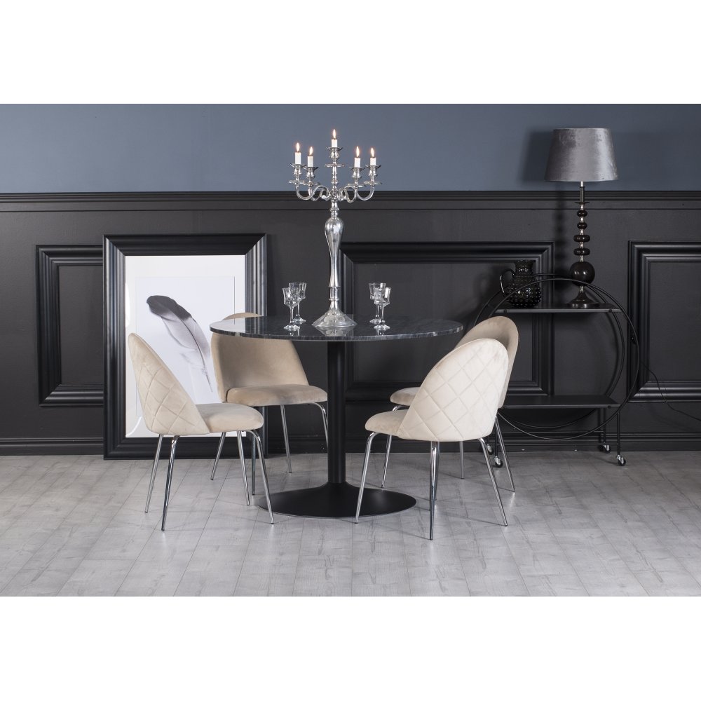 Plaza matgrupp, marmorbord med 4 st Plaza sammetsstolar - Beige/Grå/Svart