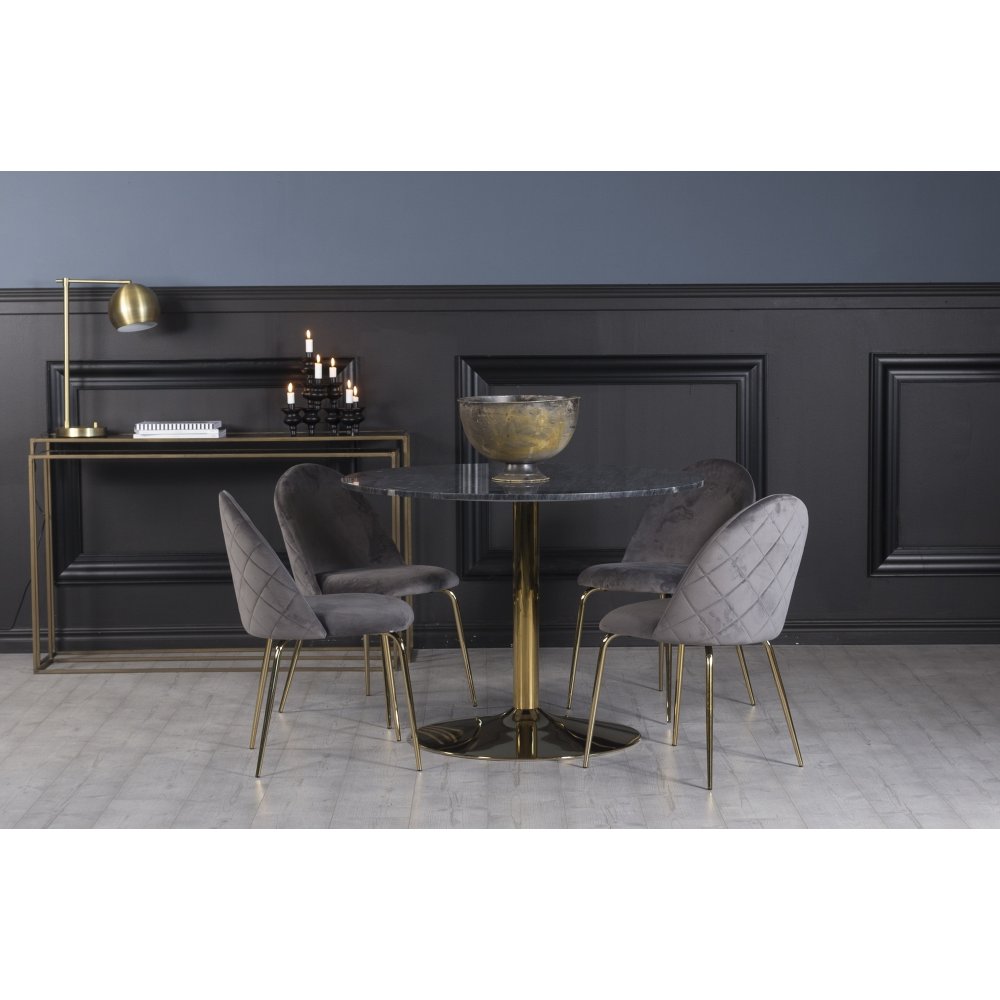 Plaza matgrupp, marmorbord med 4 st Plaza sammetsstolar - Grå/Mässing