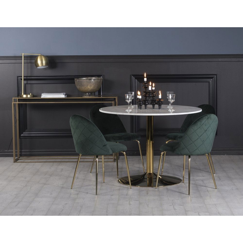 Plaza matgrupp, marmorbord med 4 st Plaza sammetsstolar - Grön/Vit/Mässing