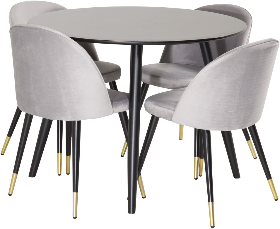Plaza matgrupp med 4 st Velvet stolar - Svart/Grå