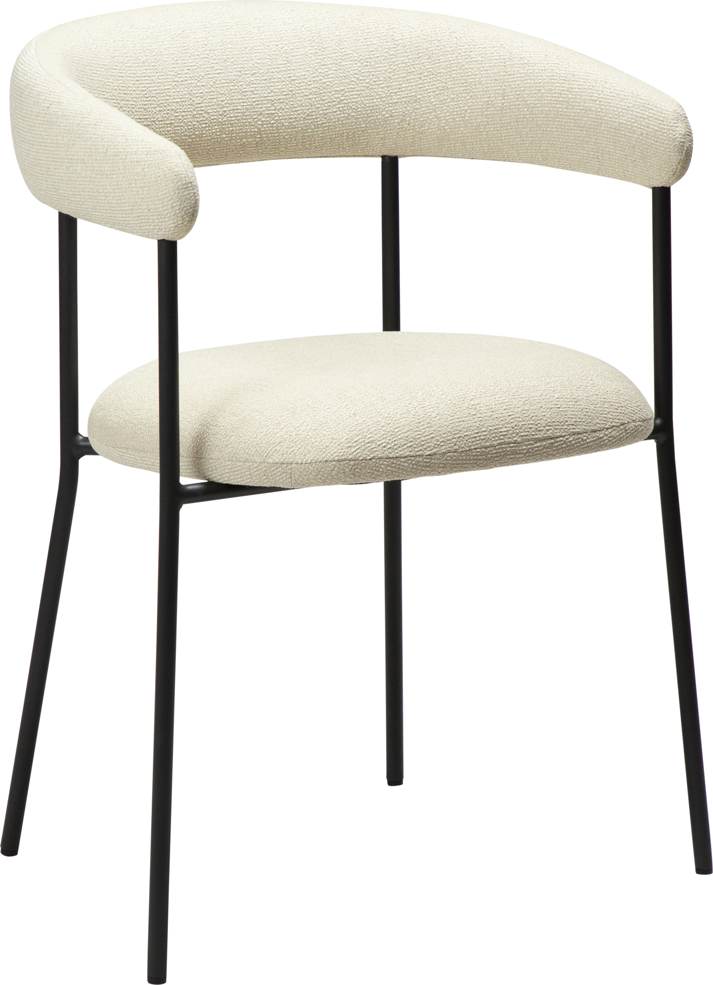 Karmstol formgiven av Says Who för danska varumärket Dan-Form. Stolen har smala metallben och en böjd rygg som även bildar armstödet.