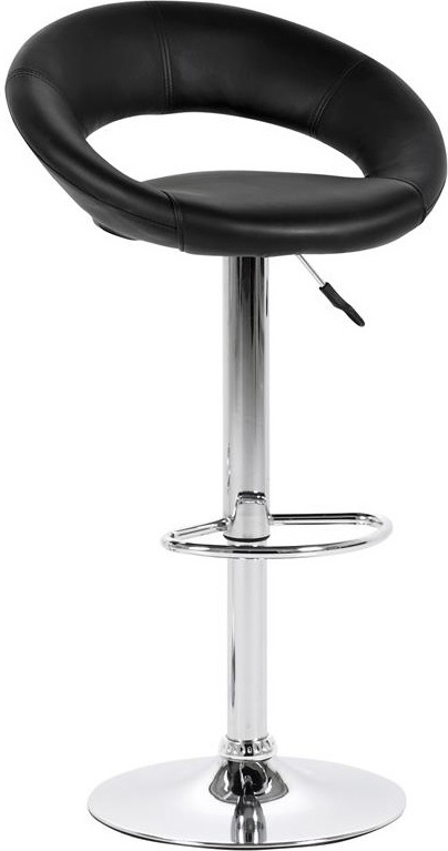 Barstol med en modern design från vår Plump serie. Sitsen är klädd med svart konstläder (PU). Trumpetfoten är av kromad metall och har ett fotstöd. Höjden på sitsen är reglerbar tack vare den TÜV märkta gasfjädringen.
