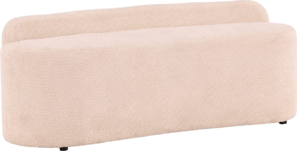 En modern soffa med säregna former och läcker design! Soffan är tillverkad i mjukt vitt boucletyg, vars lurviga egenskaper ger ett schysst blickfång till möbeln. Den robusta puffen bryter av snyggt i kontrast till det låga ryggstödet och ger möbeln en smakfull känsla. Placera mot en vägg med snygga kuddar som kompletterar ryggstödet eller solitär som en generös sittpuff - bara fantasin sätter gränser!