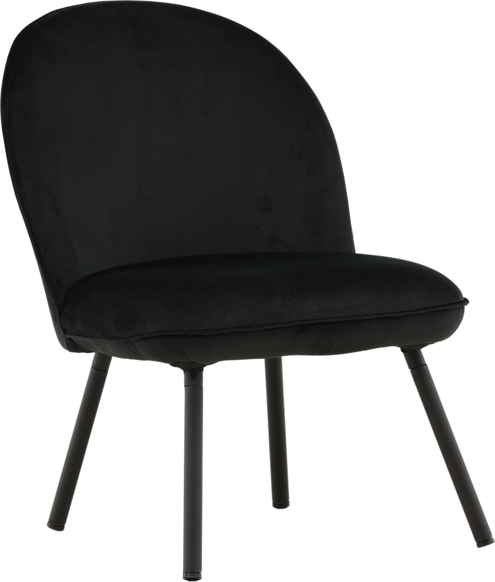 Den här stilsäkra fåtöljen har en genomgående svart kulör med en mjuk sits i sammetstyg och utsvängda ben i svart metall. Den skandinaviska designen är genomtänkt med en rundad utformning och bra balans mellan stil och komfort. Möblera intill soffgruppen eller solitär i läshörnan! Levereras omonterad.
