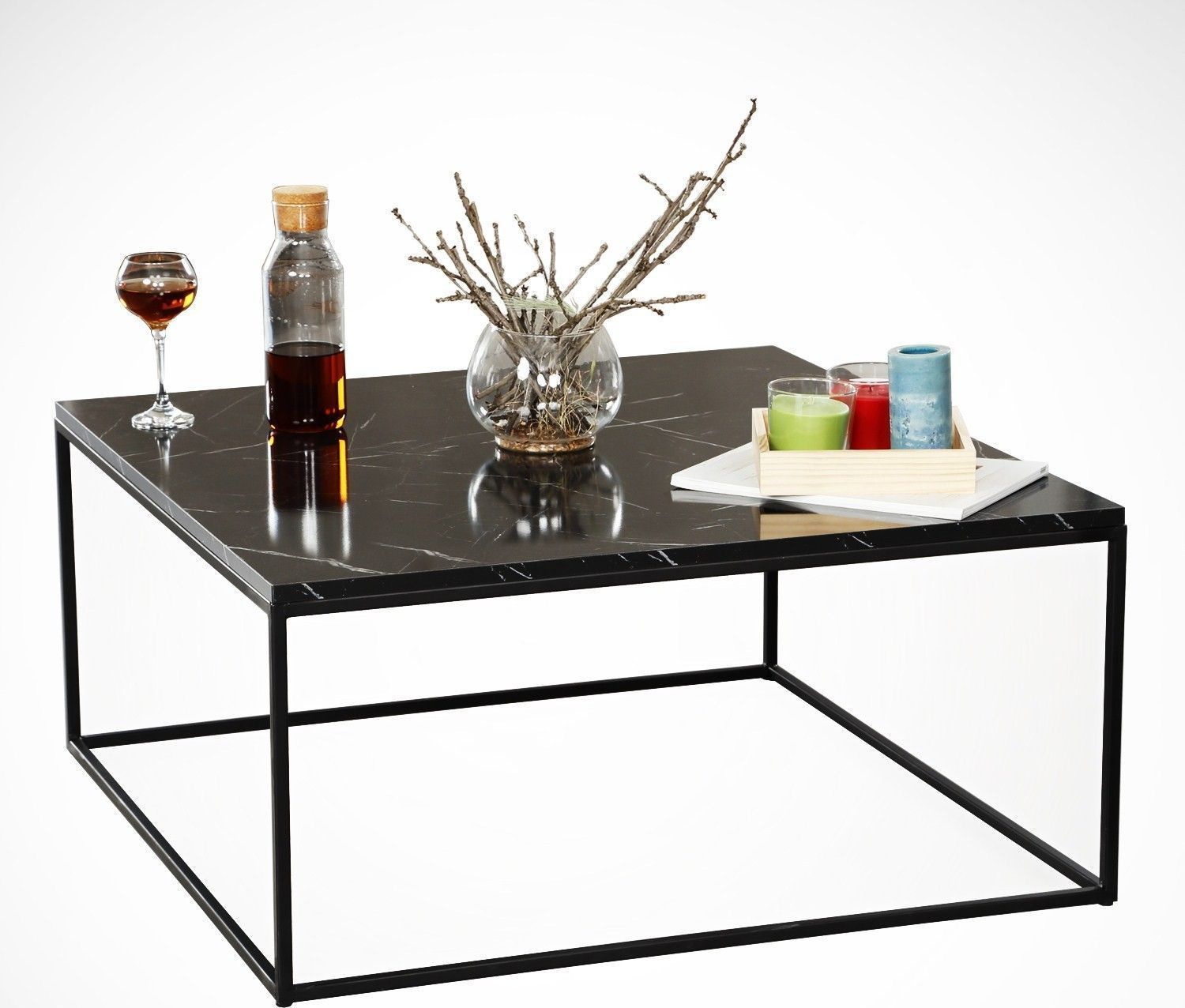Poly soffbord 75 x 75 cm - Svart/vit