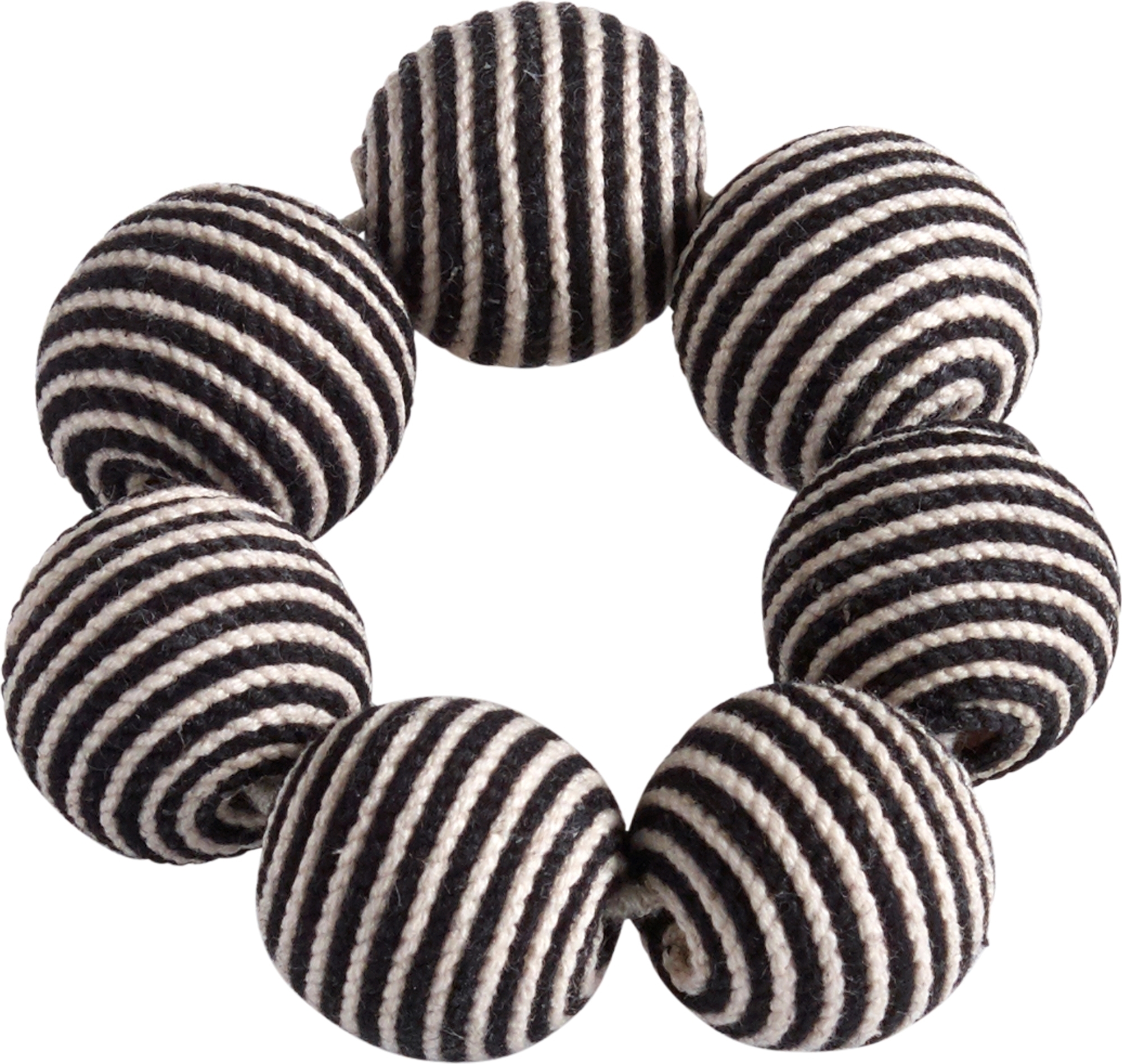 Söt randig servettring med tygbeklädda träkulor. Finns i svart, beige och grön.