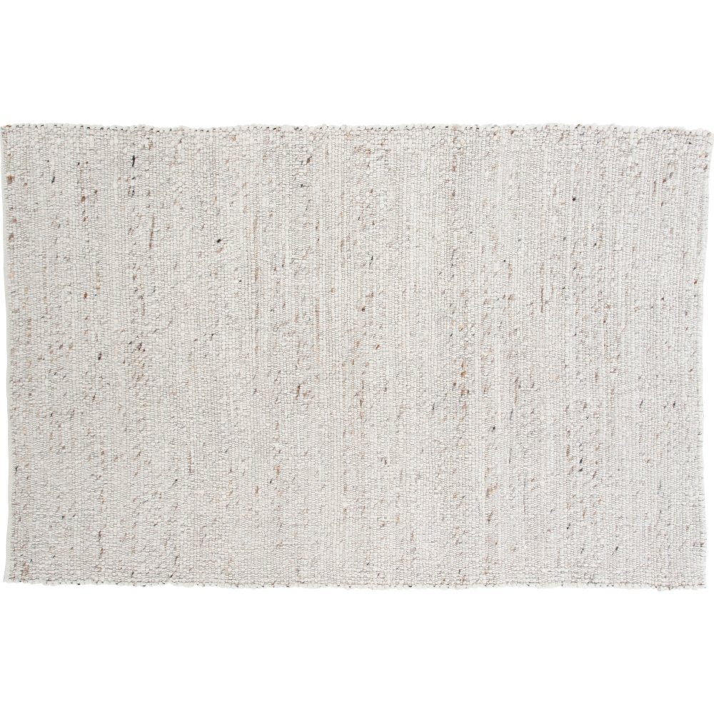 Handvävd ullmatta i benvit och beige nyans. Mattan är vävd med ett tjockt ullgarn som med dess grova struktur och tjocklek gör mattan mjuk och skön att gå på.