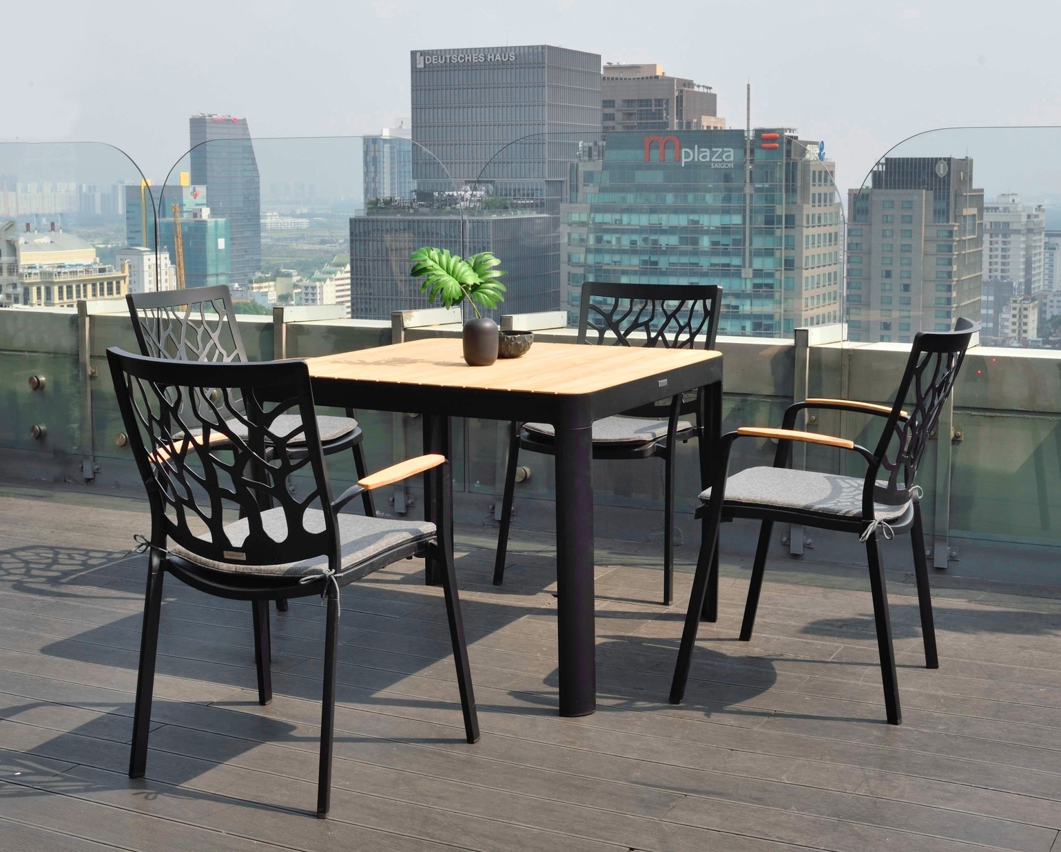 Matgrupp med 1 st kvadratiskt matbord (95x95 cm) och 4 st staplingsbara matstolar.