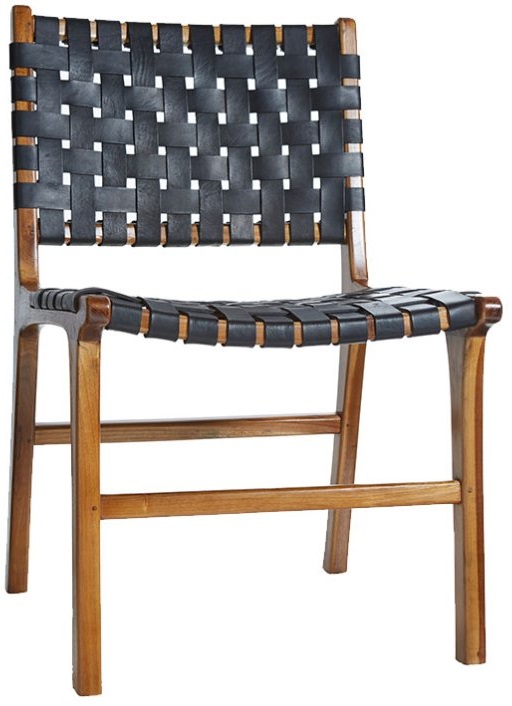 Retro stol med sits i sadelgjord av konjaksfärgat läder. Massiv trästomme i teak. Stolen tillhör vår populära serie Porto.