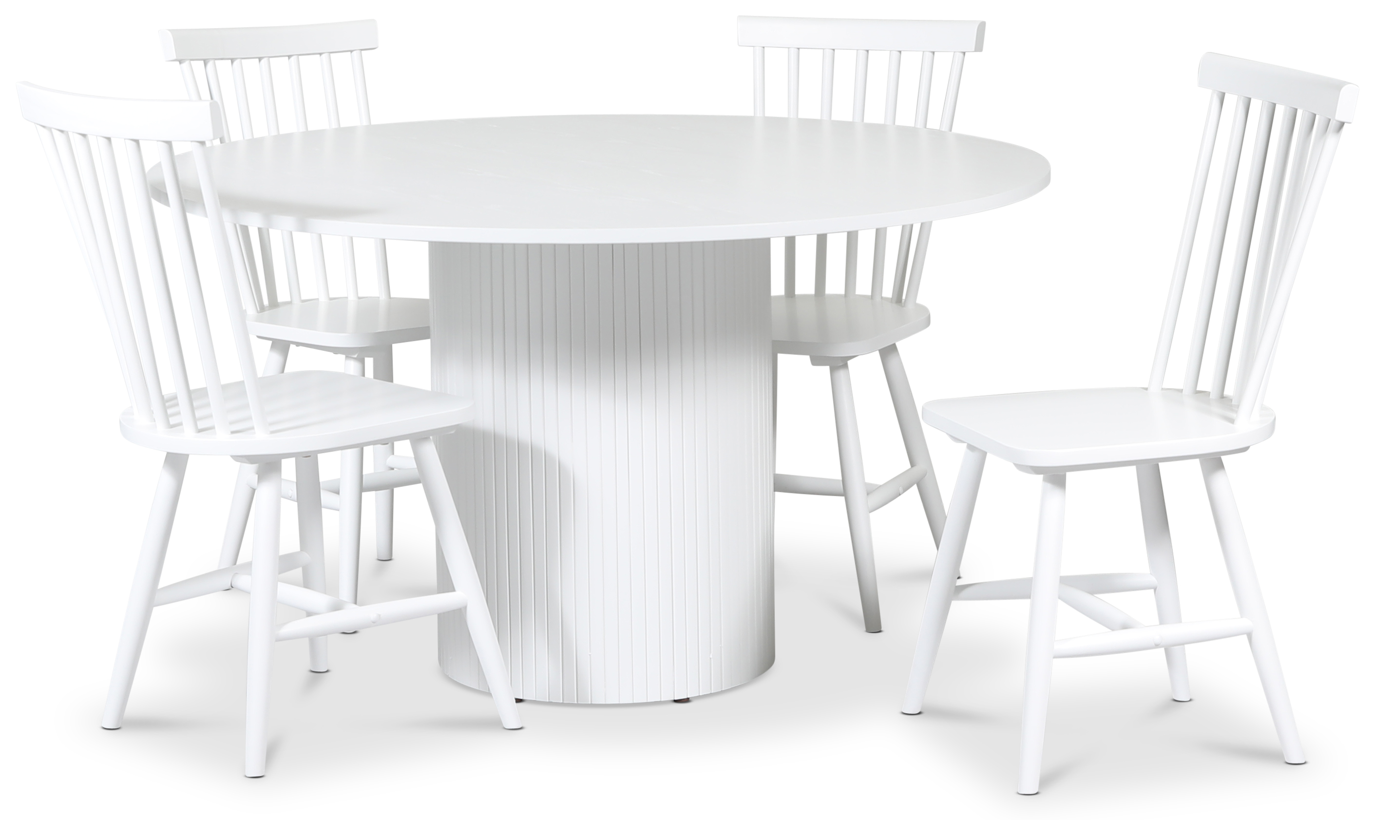 Pose matgrupp: Bord Ø130 cm inklusive 4 st Karl pinnstolar - Vitbetsad ek