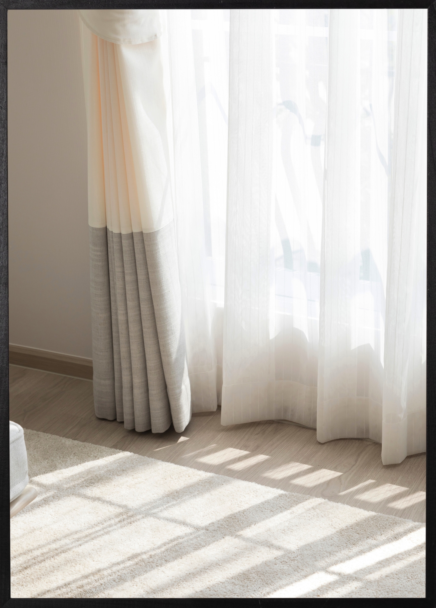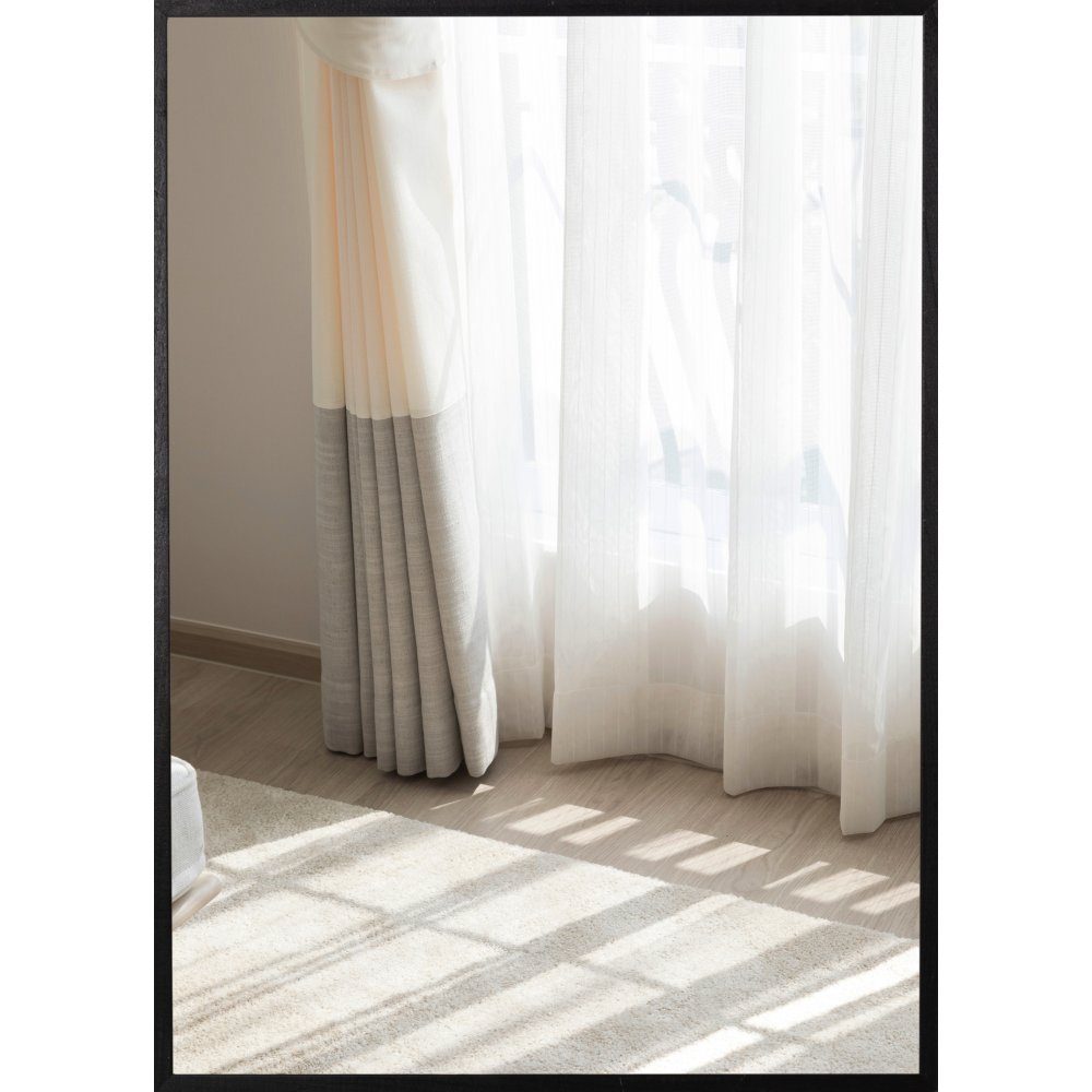 Ett fotokonst-print med skira gardiner som mjukar upp solens starka strålar som letar sin in i rummet. De ljusa kulörerna av vitt och beige skapar en mjuk känsla av lugn i postern. Kombinera enkelt med inredning eller med andra posterns och skapa just din stil hemma.
