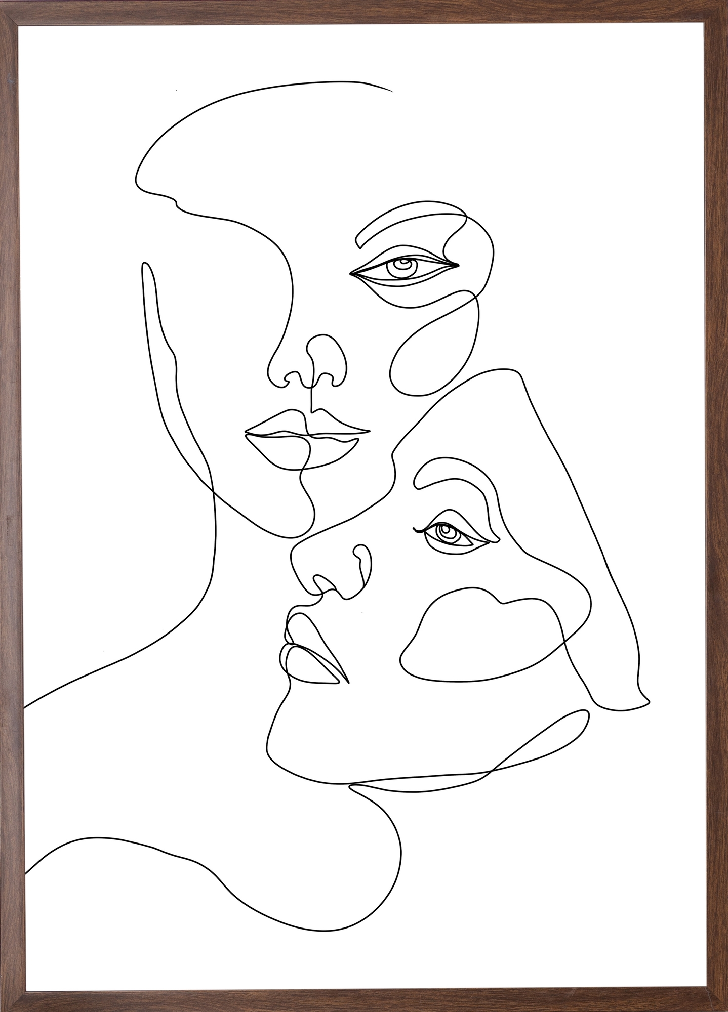 Minimaliska line-art illustrationer är ett enkelt sätt att ge ditt hem en mer trendig och stilsäker look utan att upplevas som tråkig! Motivet för detta print är två ansikten som är illustrerade med svarta linjer mot en vit bakgrund. Fördelen med den minimalistiska konstformen och line-arten är att det är enkelt att kombinera sådan konst med dels inredening men också med andra posters för att skapa en enhetlig känsla i hemmet!
