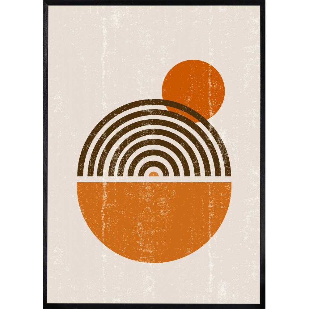 Ett härligt print i varma färger med symmetriska former som skapar lugn för ögat! De varma orange kulörerna mot den ljusa bakgrunden gör också att printet poppar! Kombinera med andra prints i härliga färger eller använd som statement piece för din väggkonst.