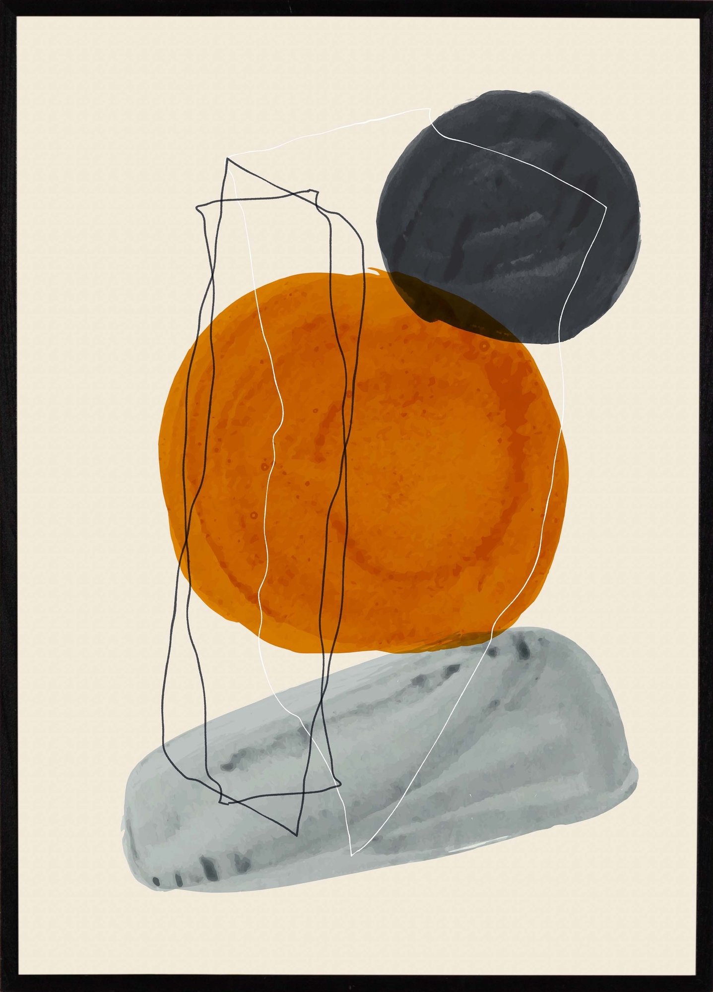Abstrakt lineart i sin finaste form! Kombinationen av de neutrala beiga och gråa kulörerna tillsammans med den mer poppande apelsinorangea gör att uppmärksamheten snabbt riktas mot detta härliga print. Printet kombineras snyggt tillsammans med inredning i olika stilar och framhäver färger och kulörer i hemmet.