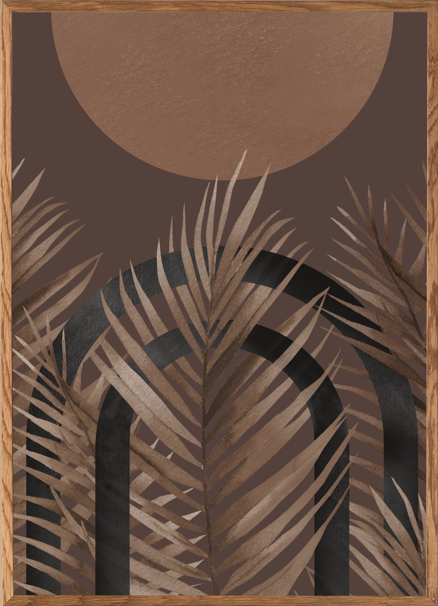 Härlig abstrakt konst som binder samman form, färg och struktur till ett ljuvligt print i mjuka jordnära färger i brunt och beiget! Formerna som illustrerar solen och växtligheten skapar snabbt en inbjudande känsla som med sina moderna färger gör printet till en stilläker detalj som kommer vara över tid.