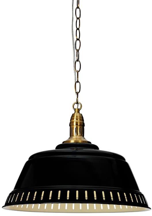 En snygg taklampa med en retro design. Tillverkad i svart metall med upphängning i vintage mässing.