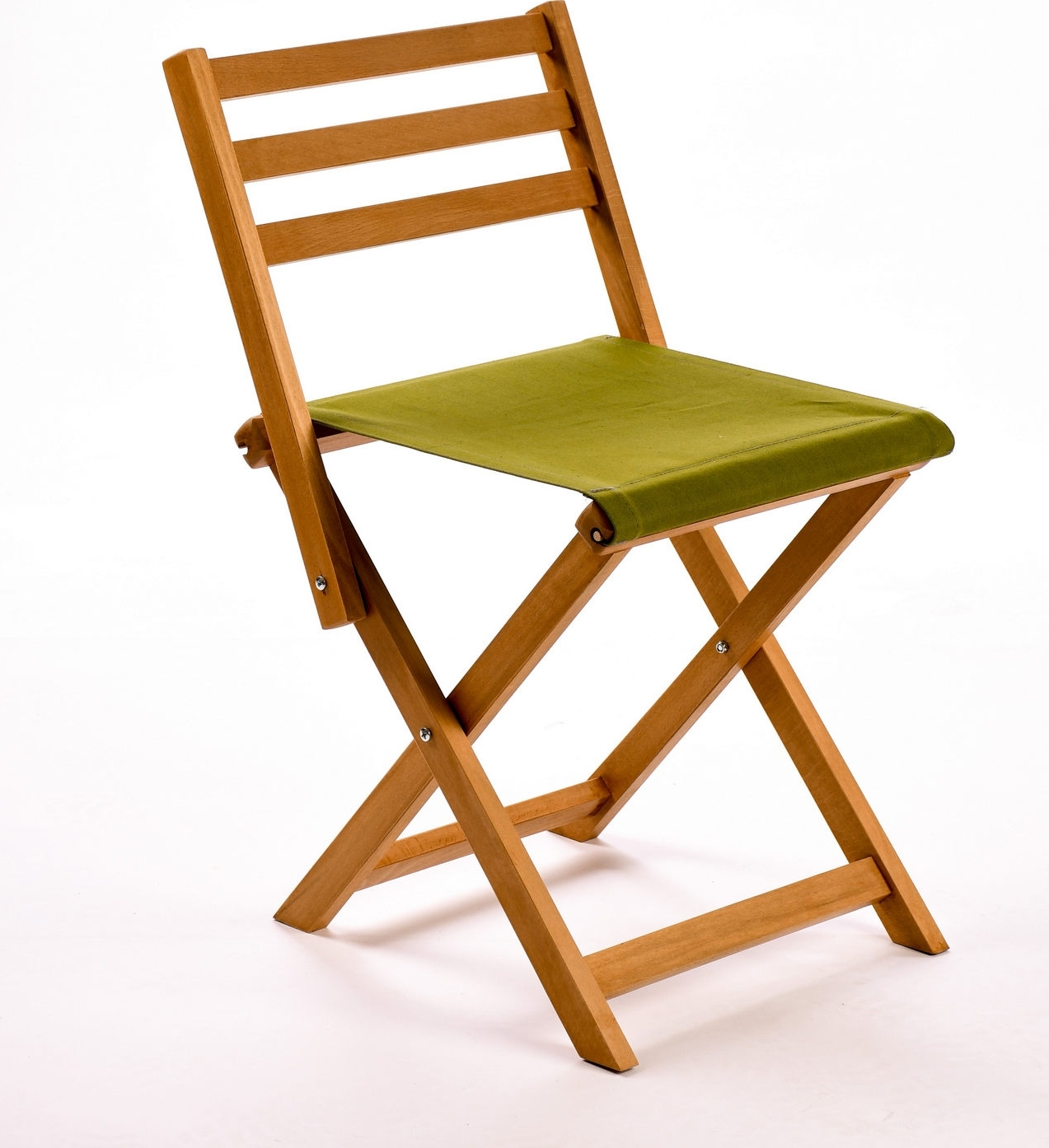 Hopfällbar stol av bokträ med klädsel av polyester.
