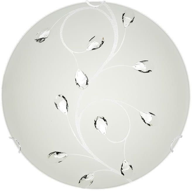 En härlig och elegant plafond med en stilren design. Tillverkad i mönstrat glas och kristaller med detaljer i kromad metall.