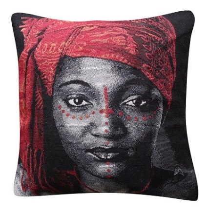 Prydnadskudde i 100% polyester med porträtt av kvinna.