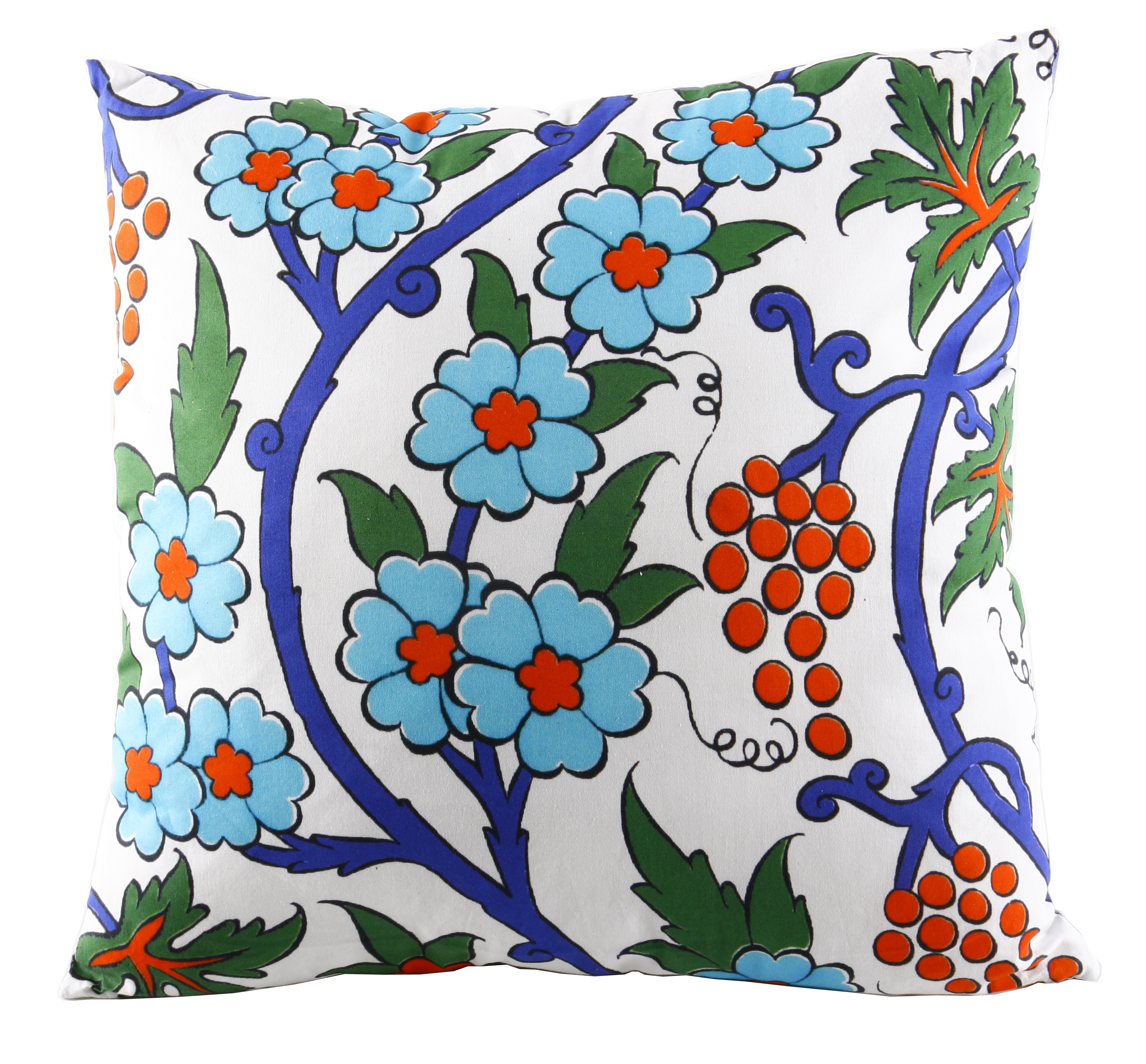 Multifärgad prydnadskudde med motiv av blommor. Tvättas i 30 grader. Innerkudde ingår.