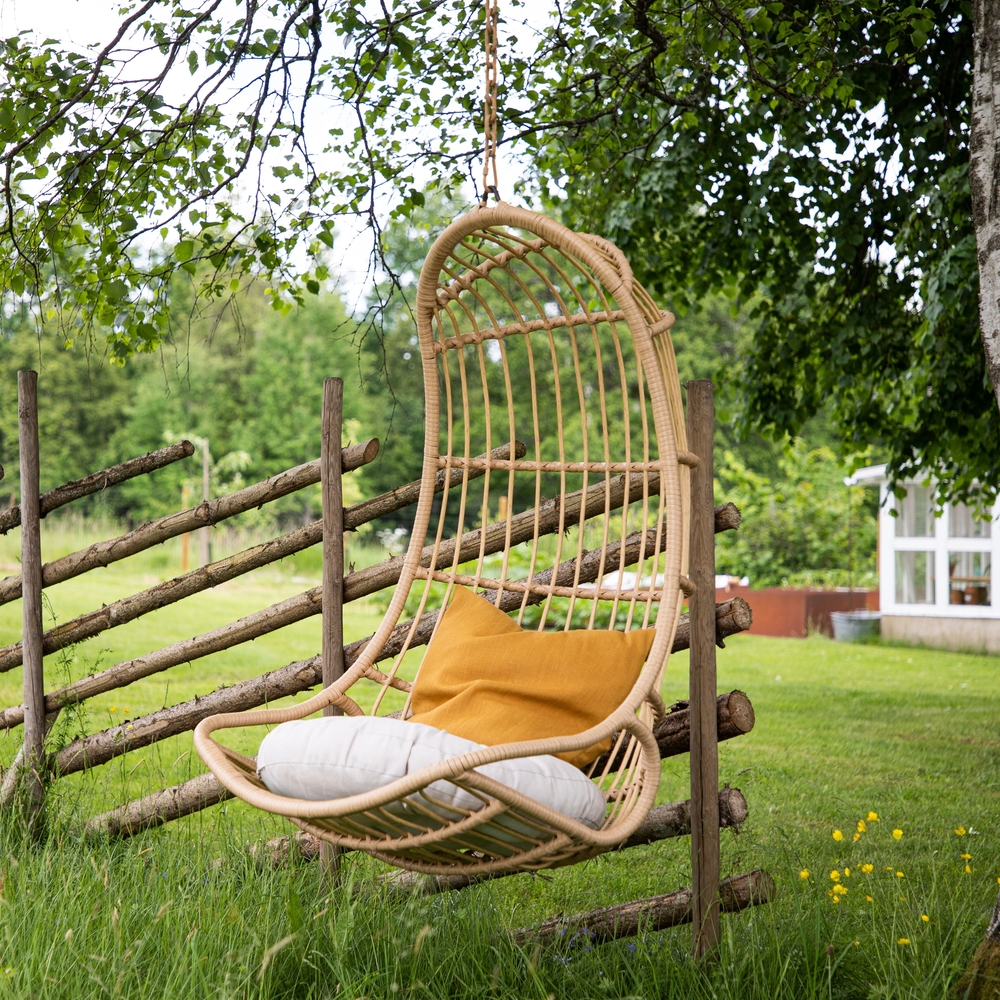 Upptäck total avkoppling utomhus med vår underbara hängstol, Pulau. Denna eleganta hängstol är den perfekta följeslagaren för dig som vill njuta av naturen med stil. Häng upp den i din favoritgren i trädet och skapa din egen lilla oas av fridfullhet. Pulau hängstolen är tillverkad av konstrotting med en stark stomme av aluminium. Dess naturliga färgton smälter sömlöst in i utomhusmiljön och ger en känsla av harmoni och lugn. Den tjocka och bekväma dynan i elegant vit polyester erbjuder en plats där du kan sjunka ner och slappna av fullständigt. Oavsett om du vill läsa en bok, lyssna på din favoritmusik eller bara titta på stjärnorna, kommer Pulau hängstolen att bli din favoritplats. Skäm bort dig själv och skapa en avkopplande reträtt i din trädgård, på din terrass eller nära din pool. Pulau hängstolen är den perfekta följeslagaren för dina stunder av avkoppling och fridfullhet utomhus. Njut av naturen med stil och sätt dig bekvämt i Pulau - din nya favoritplats att koppla av och varva ned.