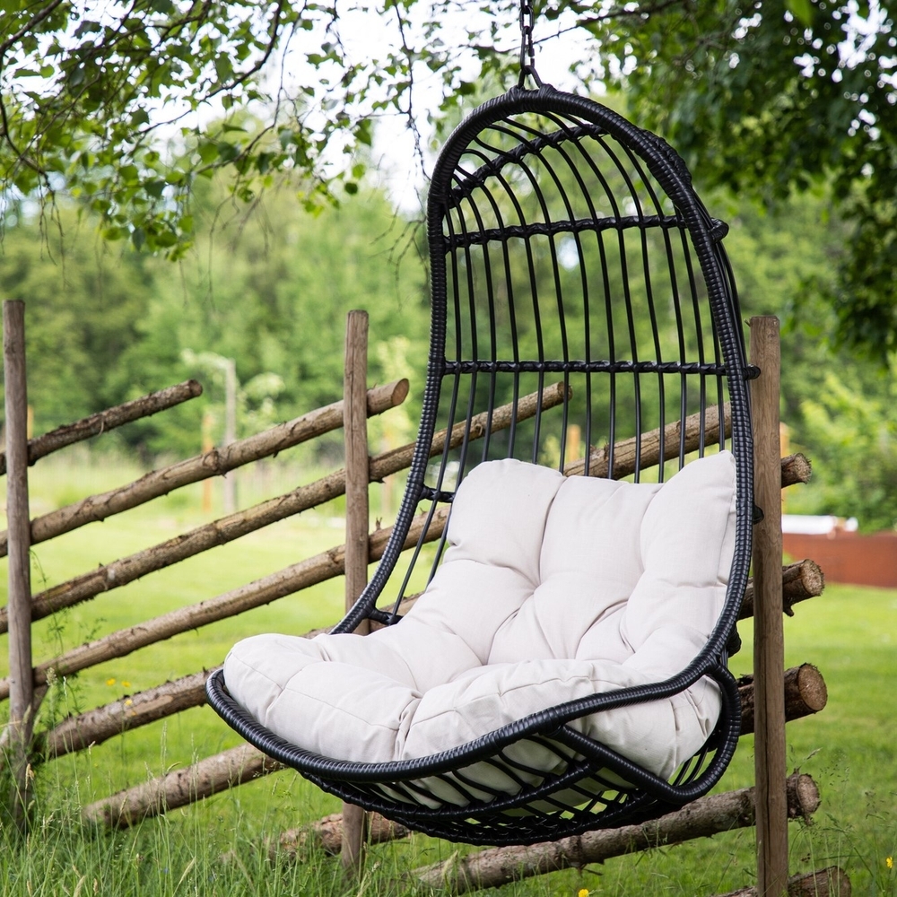 Upptäck total avkoppling utomhus med vår eleganta hängstol, Pulau. Denna moderna skapelse är den perfekta följeslagaren för dig som vill förena stil och natur i harmoni. Med en elegant svart färgton är Pulau en ögongodis i din trädgård. Tillverkad med omsorg, kombinerar Pulau konstrotting med en robust stomme av aluminium. Resultatet är elegant hängstol som kommer passa in i din utomhusmiljö. Den svarta designen ger en tidlös känsla av elegans. Den tjocka vita dynan i polyester erbjuder överlägsen komfort och en plats där du kan sjunka ner och koppla av fullständigt. Oavsett om du vill njuta av en god bok, lyssna på din favoritmusik eller bara ta in den friska luften, kommer Pulau hängstol att bli din favoritplats. Häng upp den i din trädgård, på din terrass eller nära din pool och skapa din egen fridfulla oas. Pulau är synonymt med avkoppling och stil, och den är redo att göra dina utomhusstunder ännu mer njutbara. Välkommen Pulau till ditt liv och ta plats i en modern och bekväm hängstol med en tidlös svart design. "
