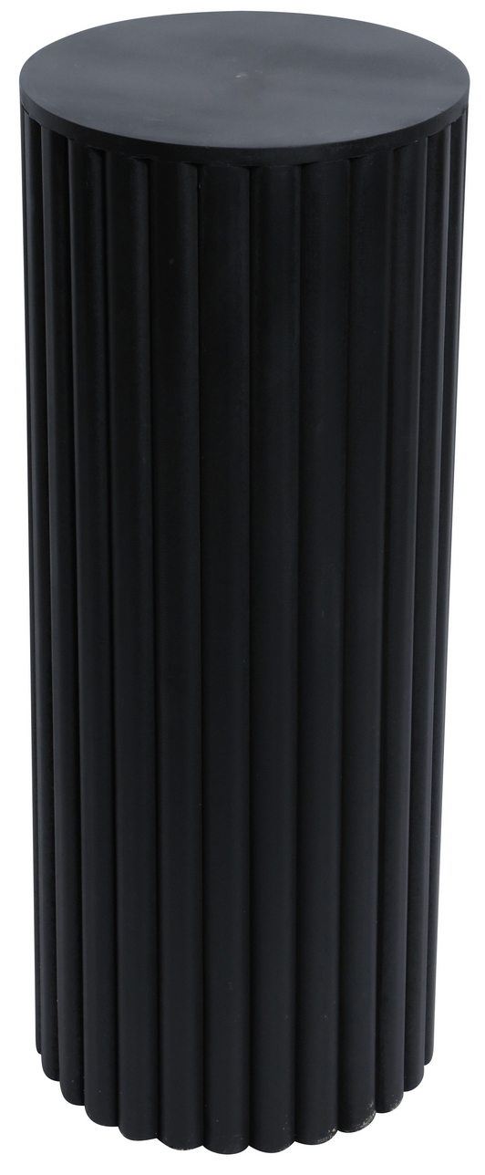 Piedestal Pure i modern stil från Skånska möbelvaruhuset. Svartlackad spånskiva med trälameller runtom foten.