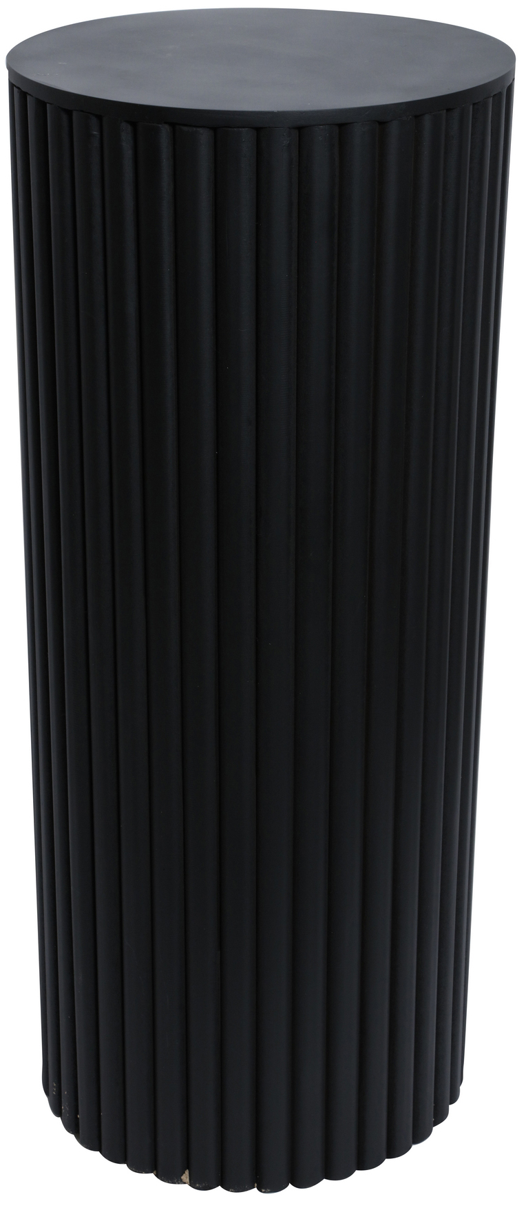 Piedestal Pure i modern stil från Skånska möbelvaruhuset. Svartlackad spånskiva med trälameller runtom foten.