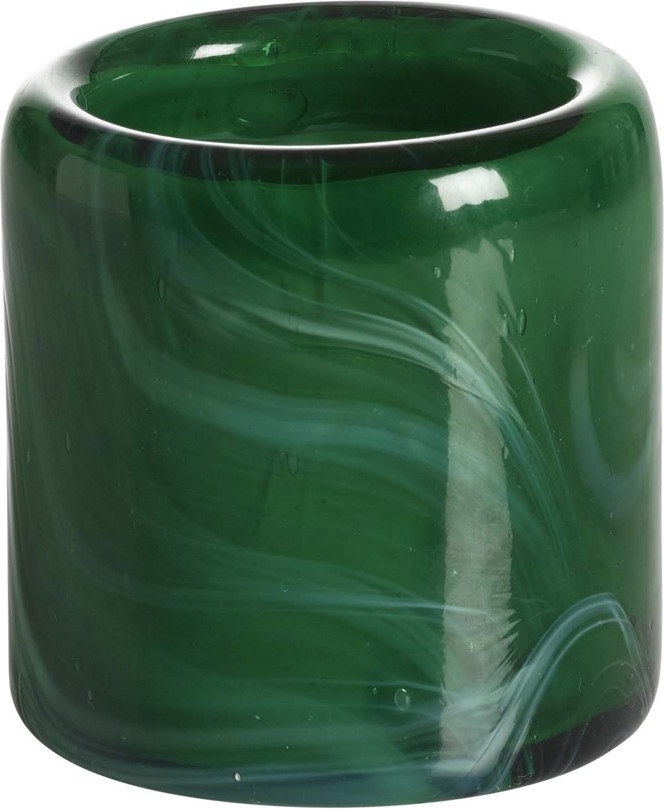 Munblåst ljuslykta med marmorerat mönster helt i glas. En naturlig variation mellan lyktorna i storlek, form och färg kan förekomma eftersom de är handgjorda.