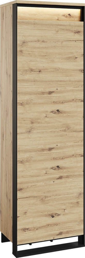 Garderob av laminerad spånskiva med inbyggd LED-belysning. Dörrar med handtagslös "push-to-open"-mekanism. Levereras omonterad.