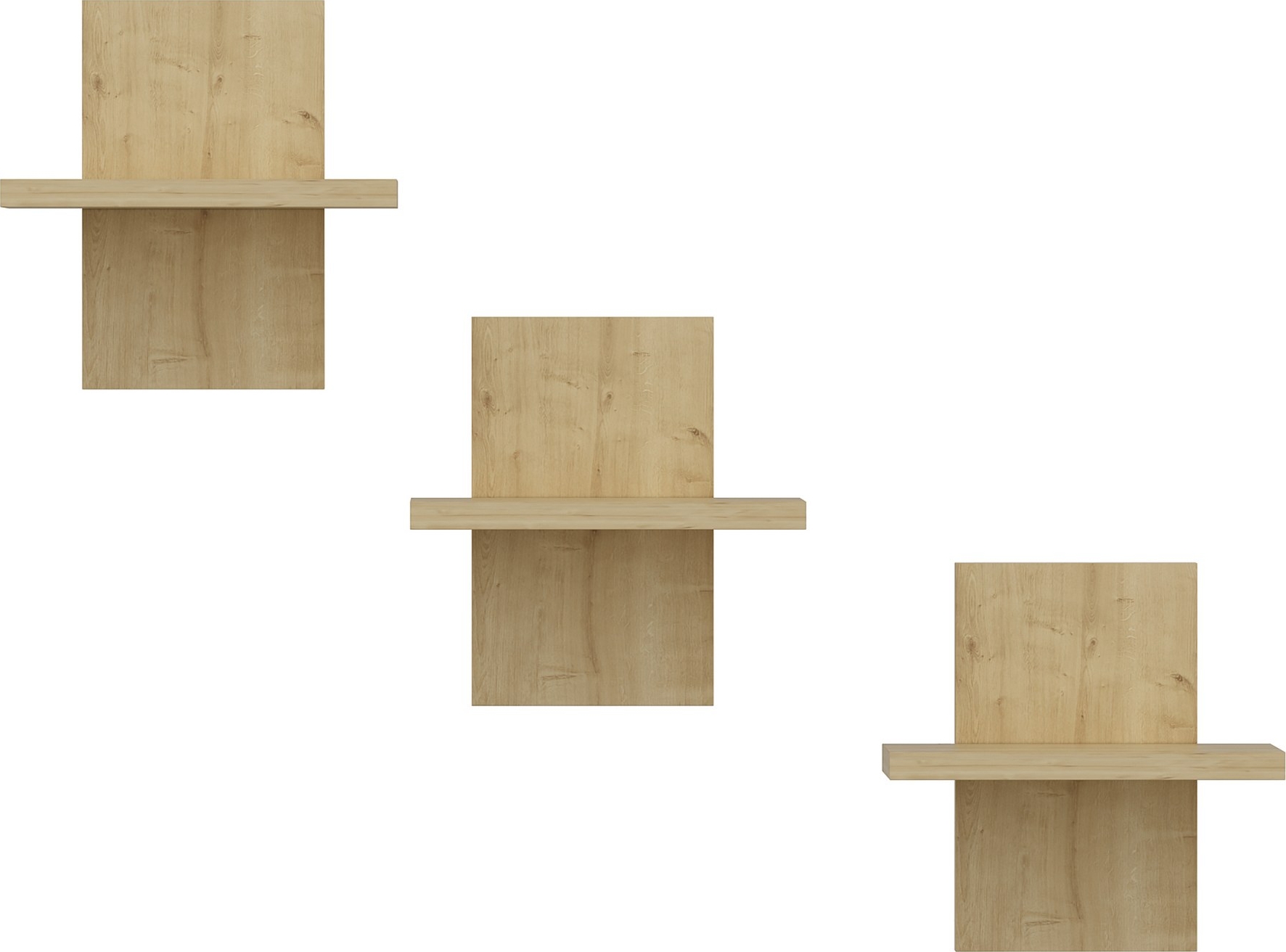 3 st vägghyllor av spånskiva.
