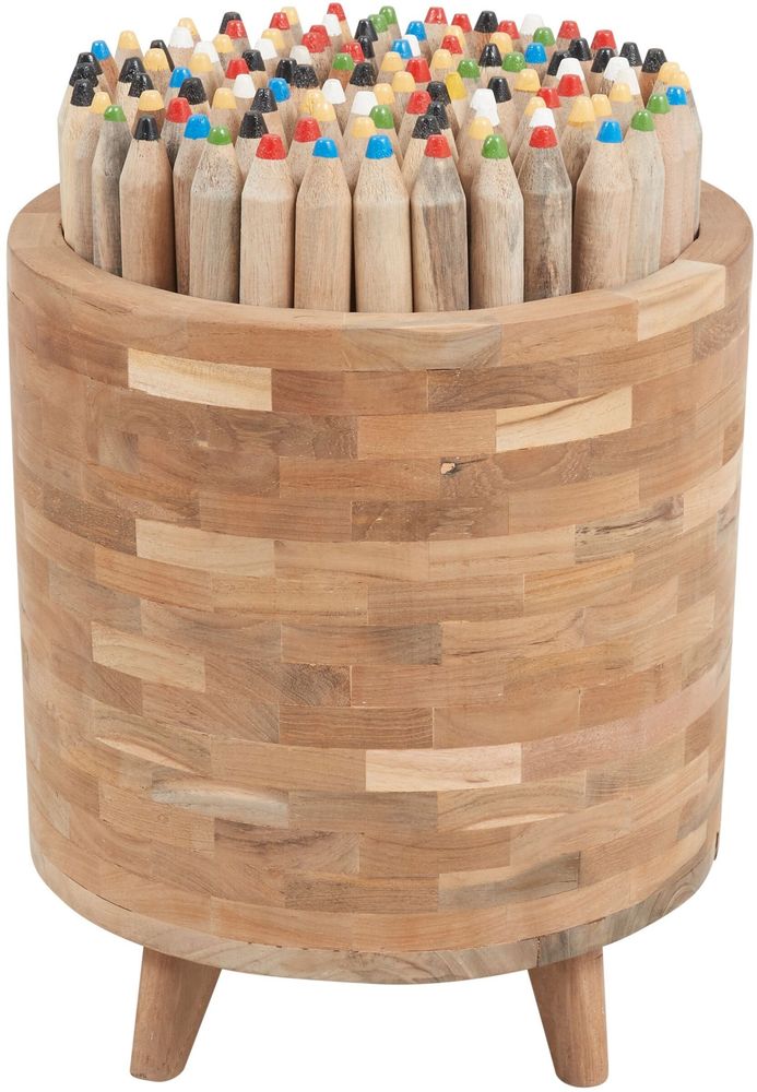 Dekorativ pall i trä med kritor i alla möjliga färger.