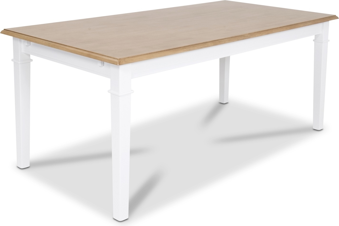 Stilfullt och massivt bord med snygga detaljer som fasad toppskiva i ekbets samt vitlackade ben med utfasad kant.