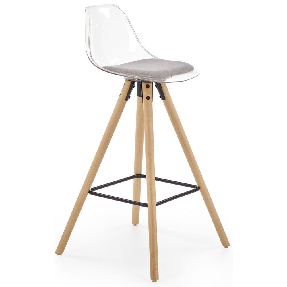 En snygg barstol med en stilren design. Barstolens sits är tillverkad av polykarbonat plast med en skön klädsel i tyg. Underredet är av solid trä med sin naturliga trä look och detaljer i pulverlackerad metall.
