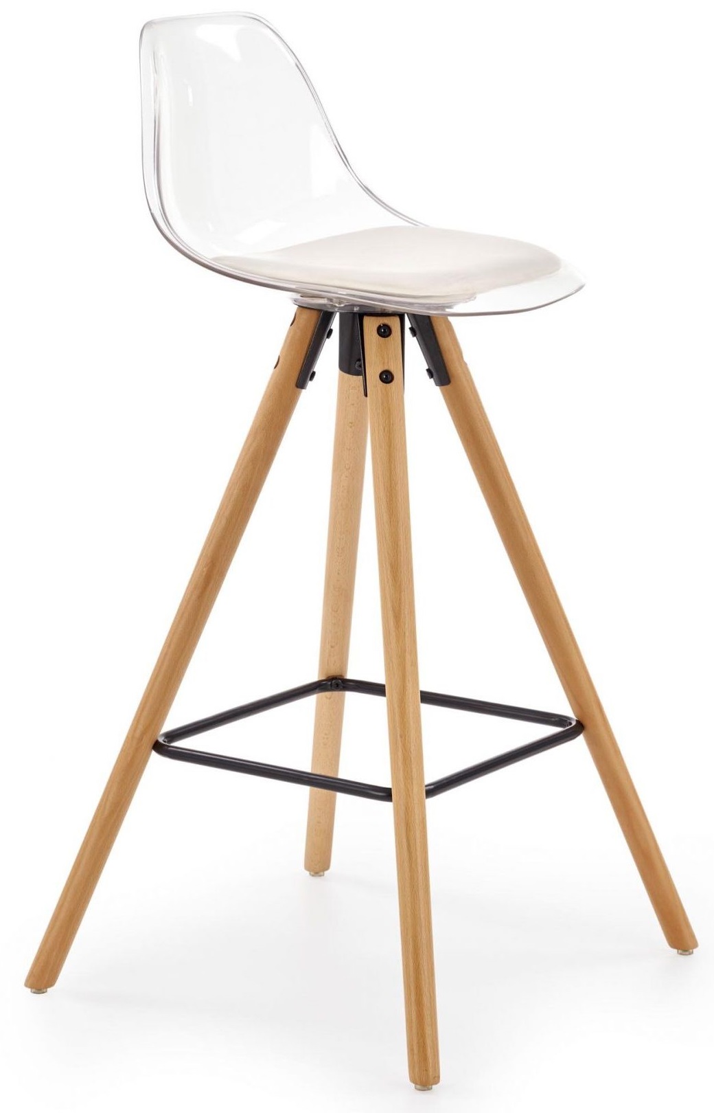 En mysig barstol med en stilren design. Barstolens sits är tillverkad av polykarbonat plast med en skön klädsel i konstläder. Underredet är av solid trä med sin naturliga trä look och detaljer i pulverlackerad metall.