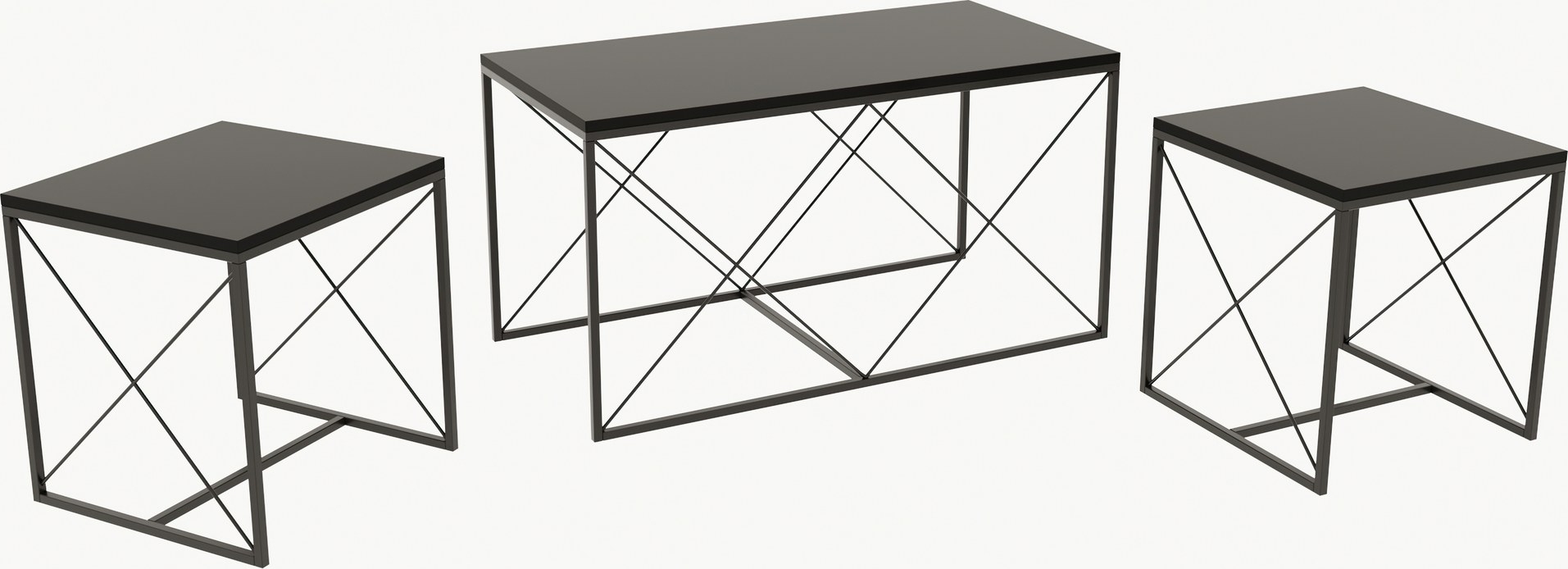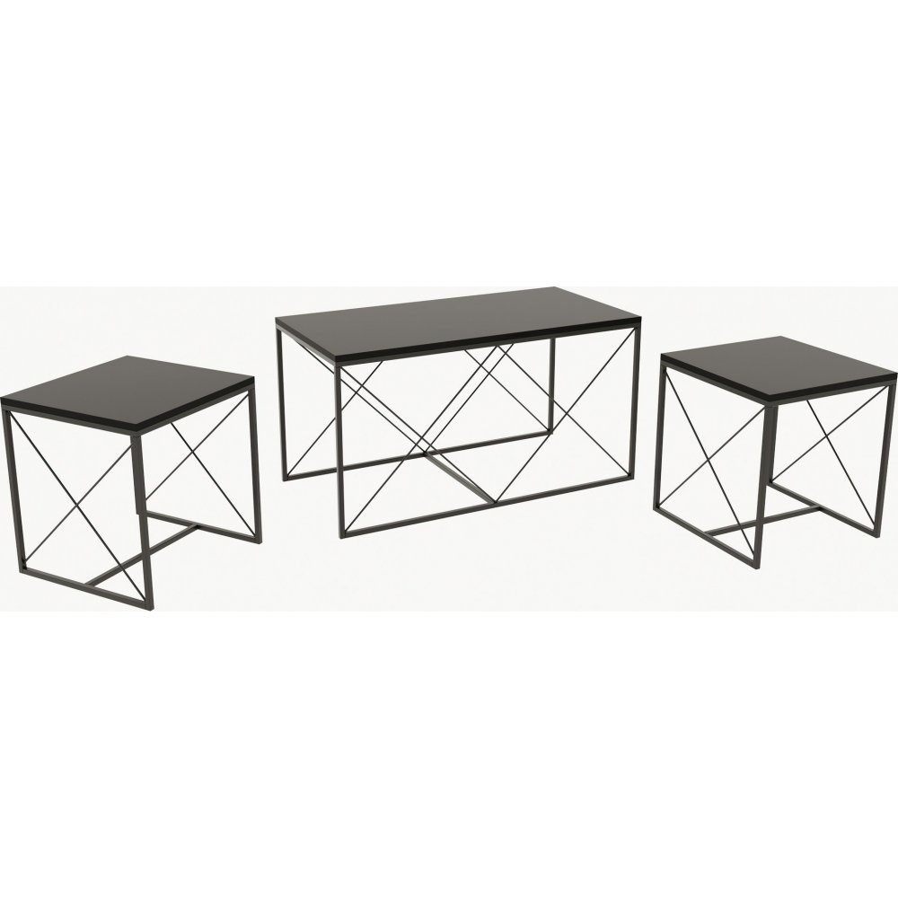 Set med 3 st soffbord av trä med ben av metall.