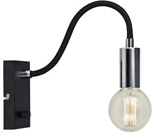 Raw härliga vägglampa med en stilren design. Tillverkad i svart metall med krom detaljer och ställbart lamphuvud. Fast installation med bygelupphäng. Inbyggd dimmer på väggplattan. Stor lamphållare (E27). Max 60W glödlampa eller motsvarande styrka i halogen, lågenergi eller LED. Mycket lätt för att hitta den rätta platsen för lampan i hemmet.