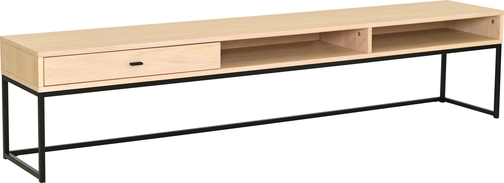 Regal TV-bänk 180 cm - Vitpigmenterad ekfanér/svart