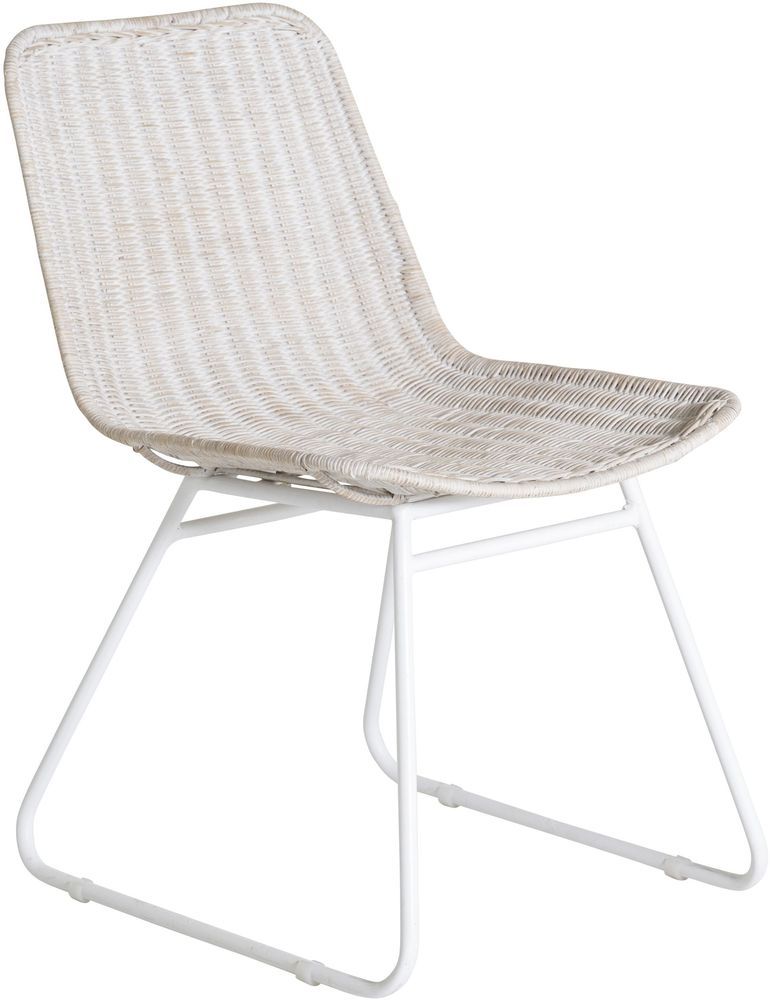 Matstol i vit naturlig rotting med underrede i vit metall.