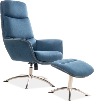 Regan fåtölj med fotpall i blå sammet
