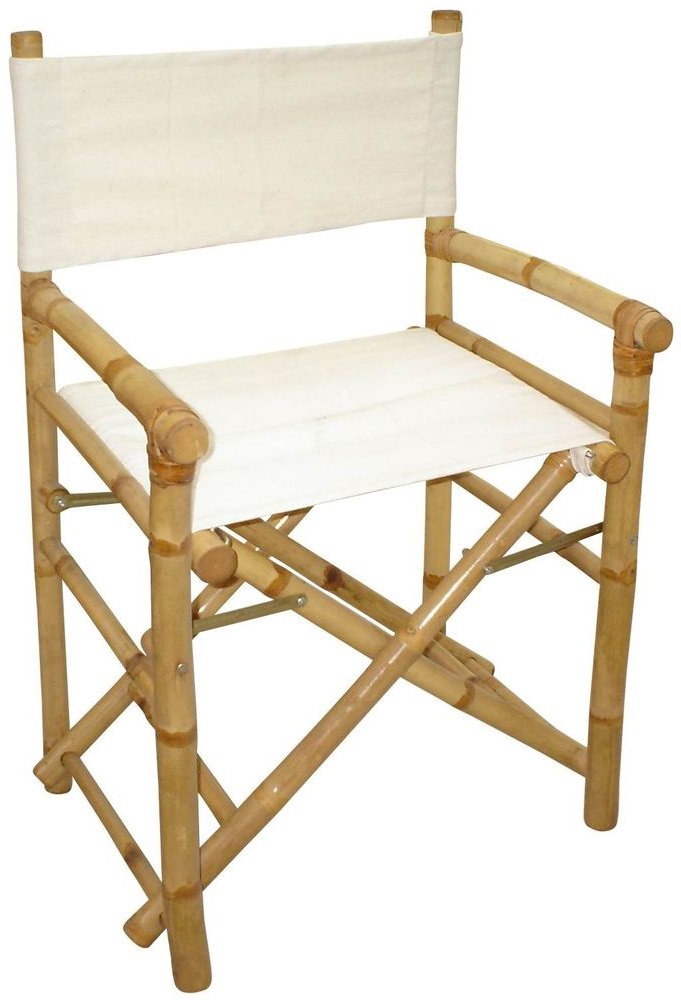 En häftig och snygg utestol med en design som efterliknar en regissörsstol. Stommen är tillverkad av robust bambu och sitsen samt ryggstödet är av mycket kraftfullt vitt tyg.