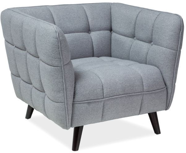 En mysig fåtölj med en robust design. Fåtöljen är klädd med ett mycket mjukt och behagligt tyg för maximal komfort och underredet är tillverkat av solid trä med ett härligt wenge utförande.
