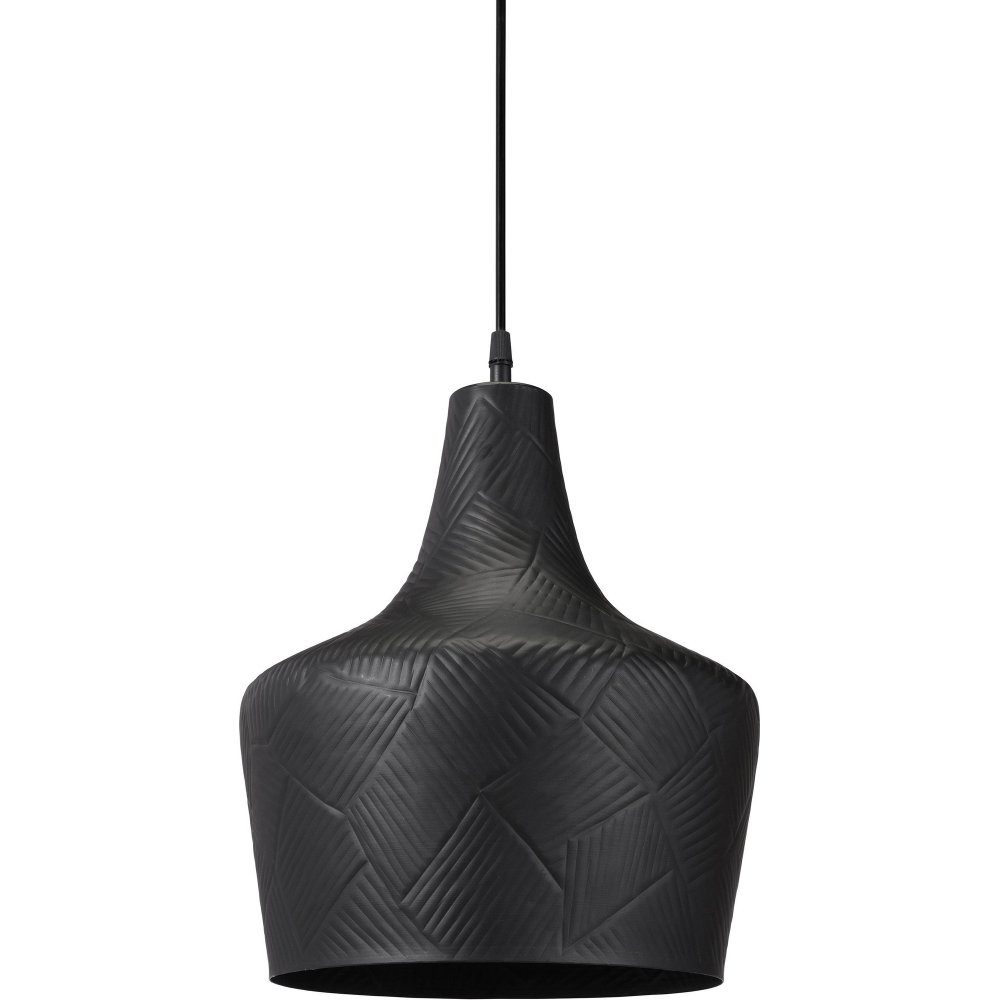 Taklampa Ribble i metall med ett hamrat dekorativt mönster. En taklampa med modern touch som passar i många miljöer. Svart finish. 1,5 m svart plastsladd med takkopp för krokupphäng i samma färg som skärmen. Ljuskälla ingår ej.